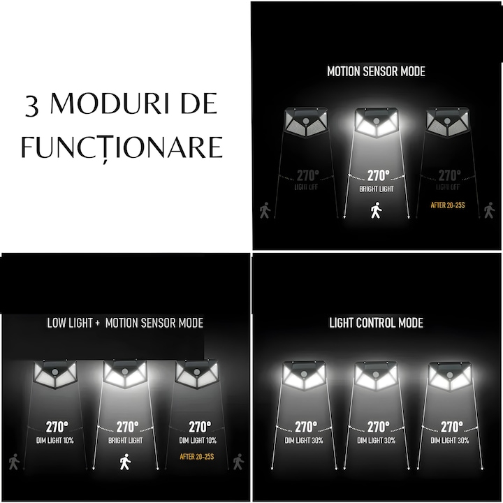 - Securitate Sporita: Senzorul de miscare detecteaza orice activitate in apropiere, iluminand zonele intunecate pentru a descuraja intrusii.