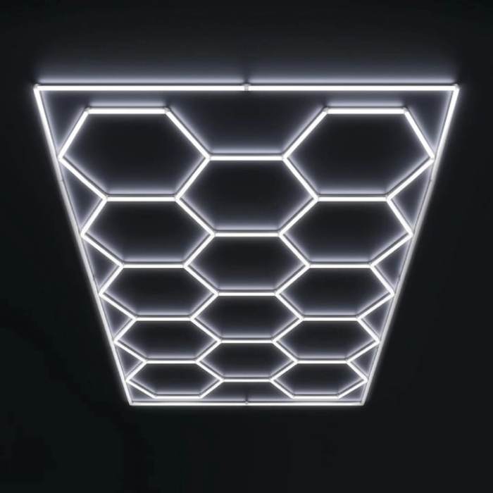 Plafonierele Honeycomb LED SmartMoment® reprezinta o solutie inovatoare pentru iluminatul modern in diverse spatii profesionale. Aceste plafoniere sunt proiectate sa imbine eficienta energetica cu un design estetic atragator, fiind ideale pentru showroom-uri, garaje, barbershop-uri sau ateliere auto. Unul dintre cele mai importante avantaje ale acestor sisteme de iluminat este capacitatea lor de a genera intre 110 si 120 de lumeni pe watt, asigurand astfel un iluminat puternic si eficient din punct de vedere energetic.