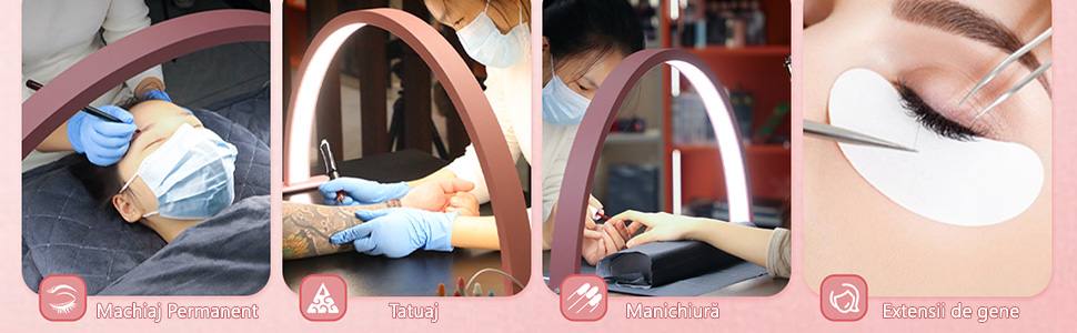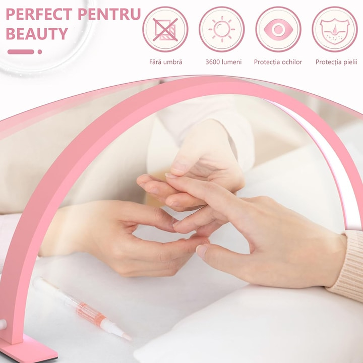 - Lampa profesionala semiluna cu LED-uri este adesea folosita pentru arta unghiilor si extensii de gene, lampa profesionala LED semiluna poate