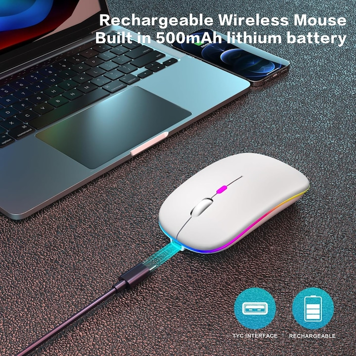 Mouse optic cu conexiune fara fir 2.4G si Bluetooth fara fir. Puteti utiliza conexiunea wireless standard 2.4G Nano Receiver sau va puteti conecta la Bluetooth. Mouse-ul este mic si usor de transportat, plug and play. Poate comuta intre 800/1200/1600 dpi, potrivit pentru computere desktop si laptopuri.
