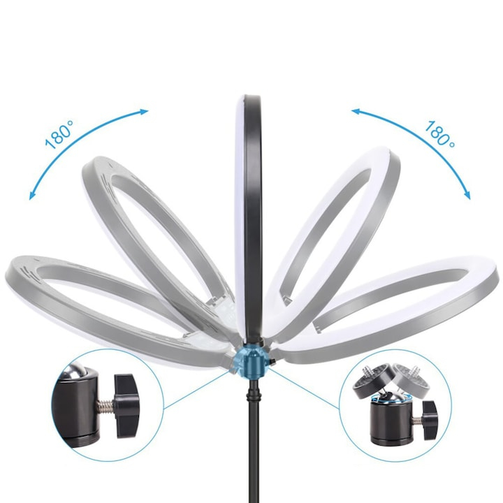 Puteti ajusta usor si intuitiv lampa in functie de nevoile dvs. - folosind telecomanda inclusa, puteti controla pe deplin culoarea si intensitatea luminii. Datorita capului rotativ al lampii, o poti seta cu usurinta in orice unghi, ceea ce, combinat cu bratul flexibil care tine telefonul, iti ofera control complet asupra compozitiei fotografiei.