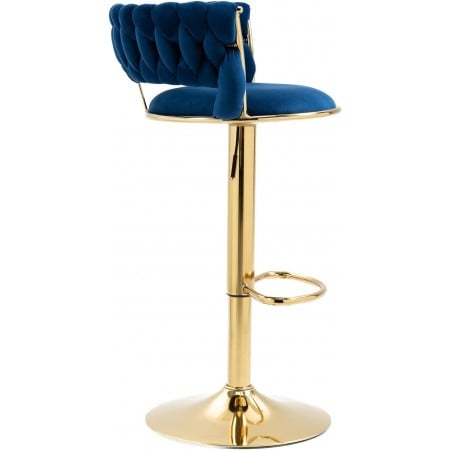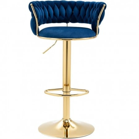 Scaun de bar din catifea cu bază aurie-albastru