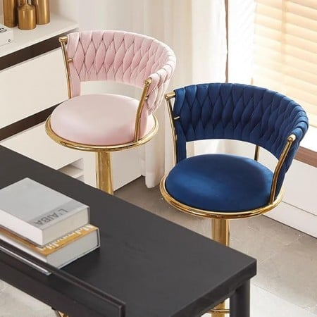 Scaunele de bar din catifea sunt proiectate pentru a adăuga un strop de eleganță și rafinament oricărui spațiu. Tapițeria din catifea oferă un aspect luxos și o textură plăcută la atingere, în timp ce baza aurie adaugă un element distinctiv de stil. Designul modern și sofisticat al acestor scaune le face ideale pentru baruri, restaurante, bucătării moderne sau orice spațiu care necesită un mobilier cu un aspect deosebit