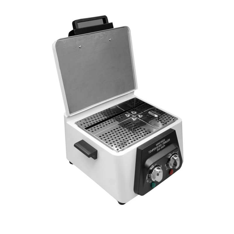 Pupinelul are un cronometru + indicator luminos al cronometrului. Cronometrul vă va permite să controlați timpul de sterilizare, care este determinat în funcție de gradul de contaminare și de materialul din care este confecționat instrumentul. Sunt disponibile moduri de timp: de la 0 la 90 de minute. În interiorul dispozitivului se află o tavă specială detașabilă pentru depozitarea și sterilizarea instrumentelor. Unitatea internă a sterilizatorului termic este fabricată din oțel inoxidabil.