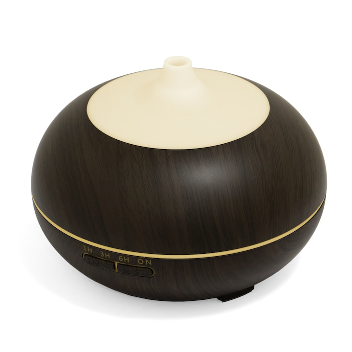 Difuzor Ulei/Aromaterapie cu ultrasunete 550ml, 8 culori LED, Telecomanda, Silentios, Oprire automata, Stejar inchis